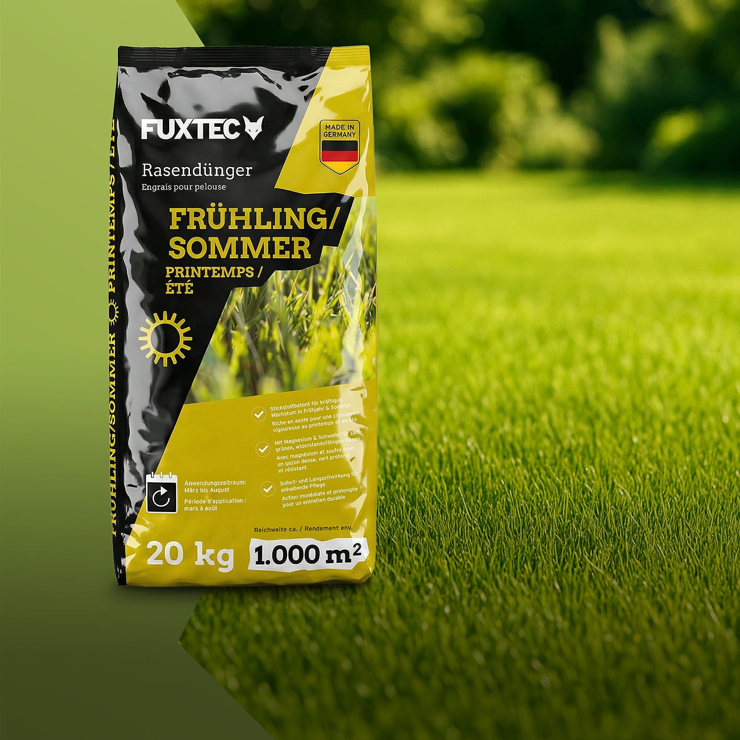 - Düngen – mit FUXTEC Rasendünger Frühjahr/Sommer