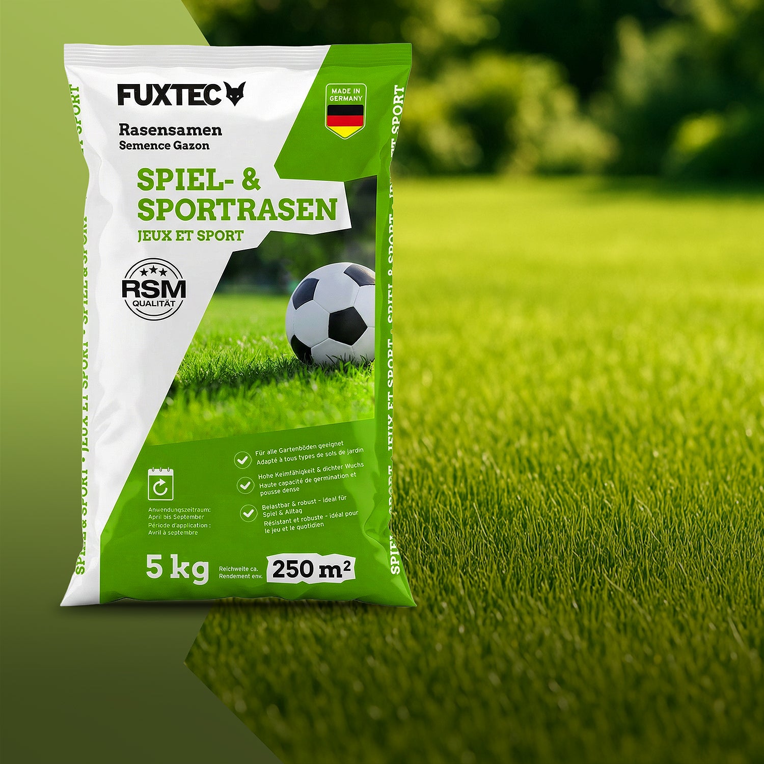 - Nachsäen (optional) – mit FUXTEC Rasennachsaat