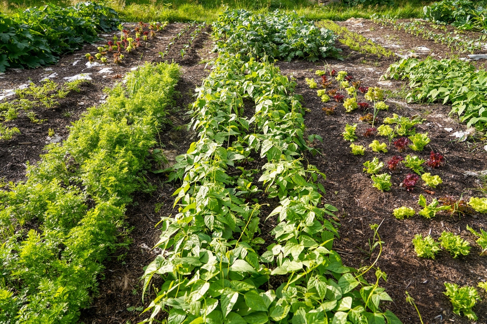 Mulchen hält die Feuchtigkeit im Boden und hemmt unerwünschten Wuchs. Mischkultur sorgt für gesunde Pflanzen, indem sie Nützlinge anzieht und Schädlinge abhält.